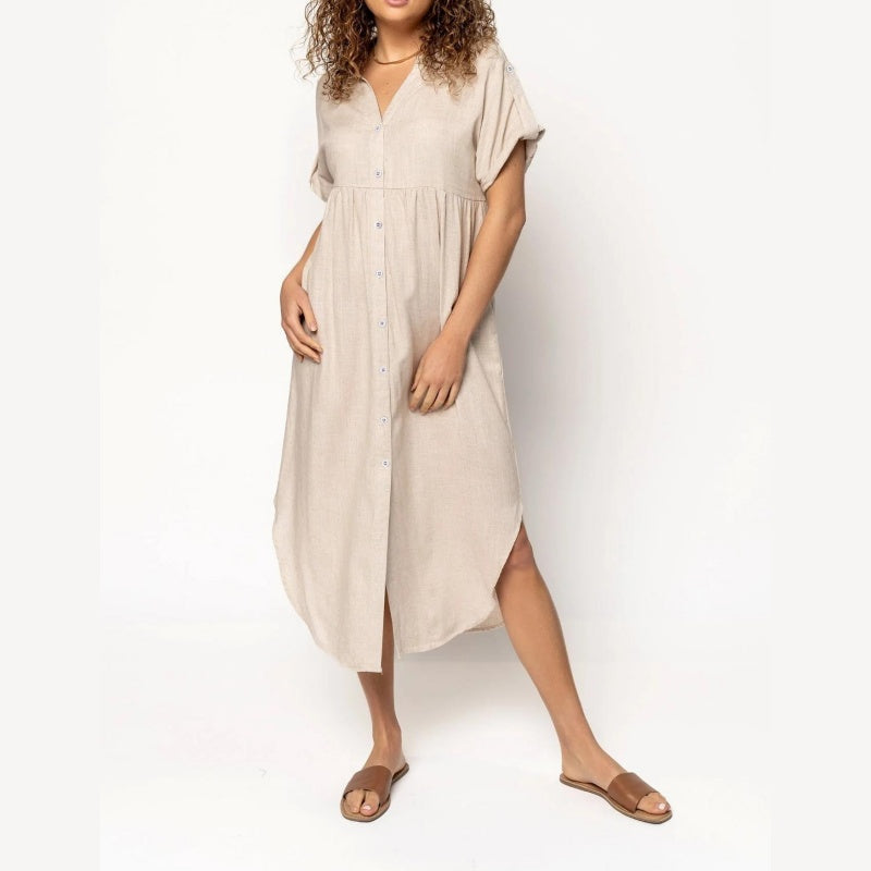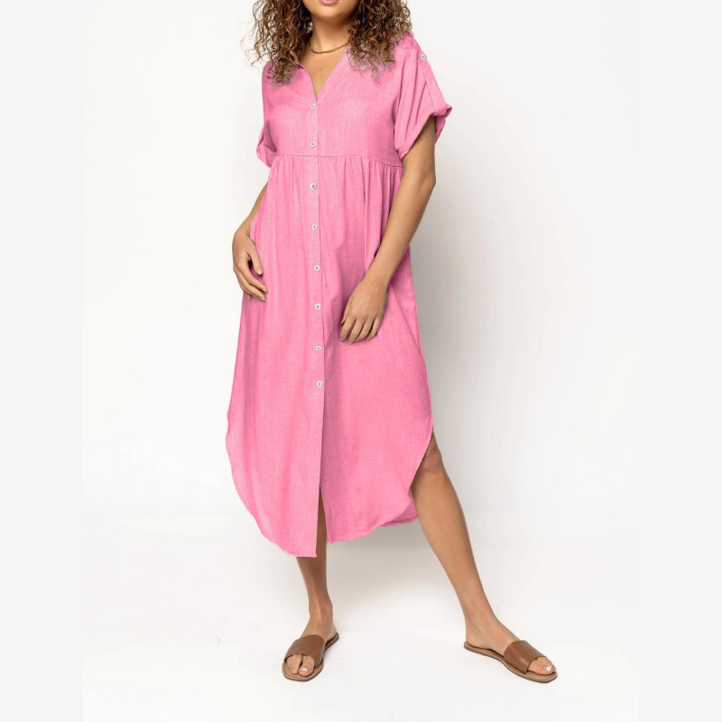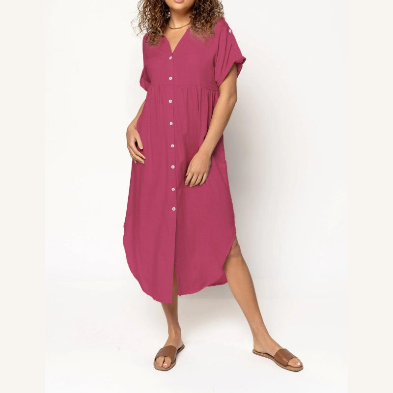 💥Free shipping💥Women's Casual Loose Rolled Up Sleeve Button Down Shirt Dress
