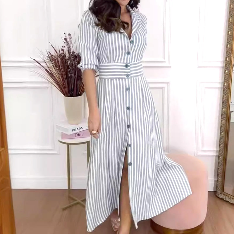 🌟Exclusive 66% OFF👗Fashion Striped Button-Down Long Shirt Dress