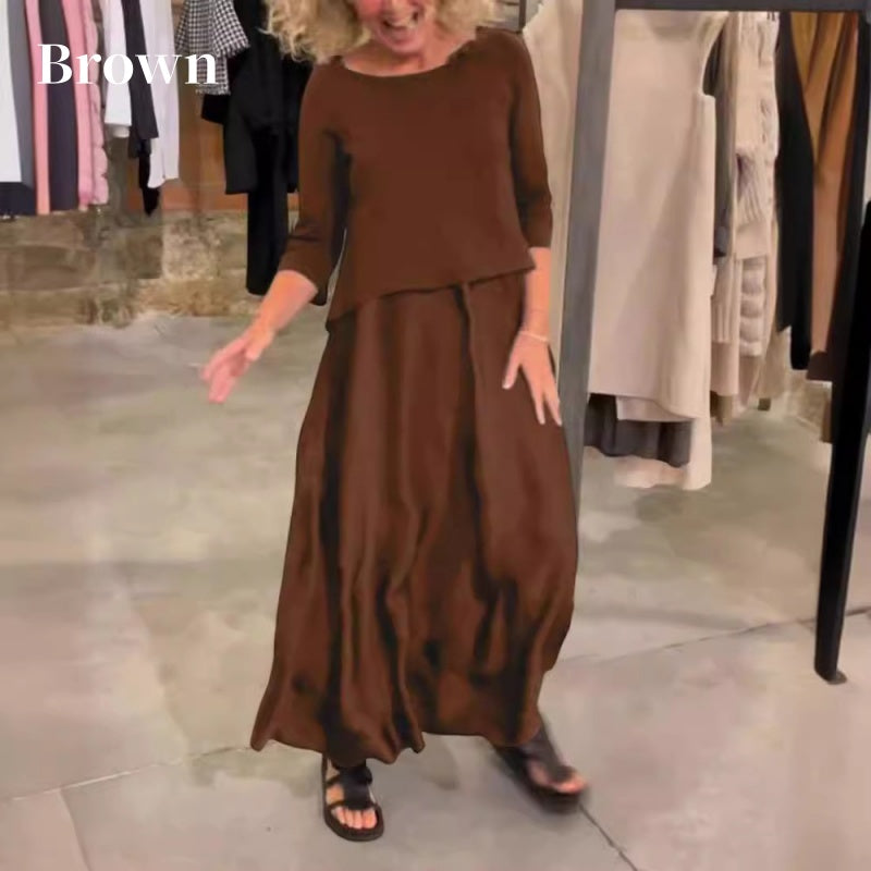 SOLID COLOR AND LOOSE FIT: Designed in classic solid colors, both the top and slip dress offer a loose, comfortable fit. The relaxed design ensures easy movement and a laid-back vibe, making it a go-to for stylish yet comfortable wear.