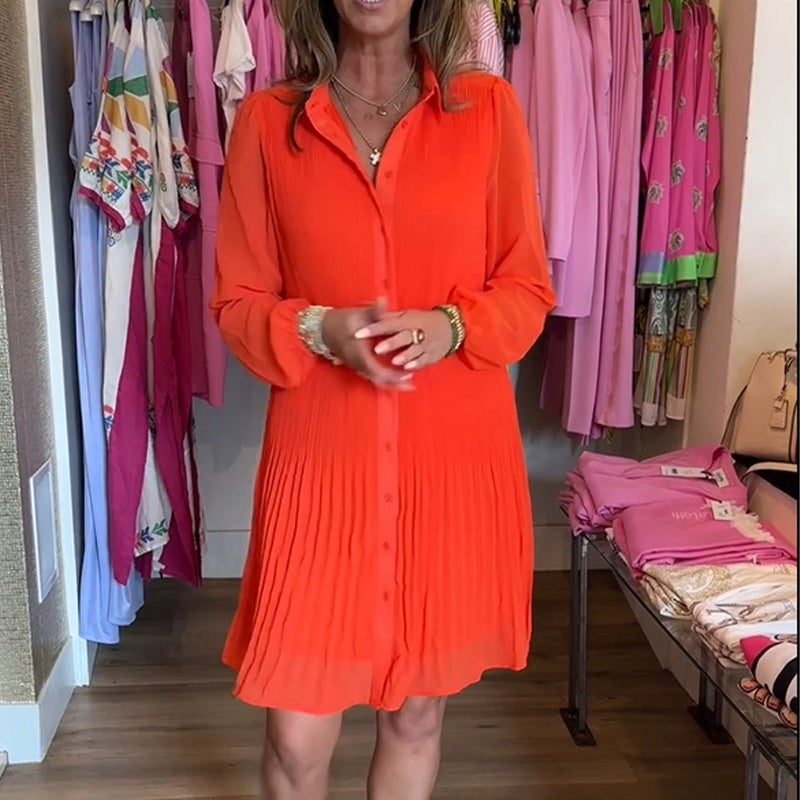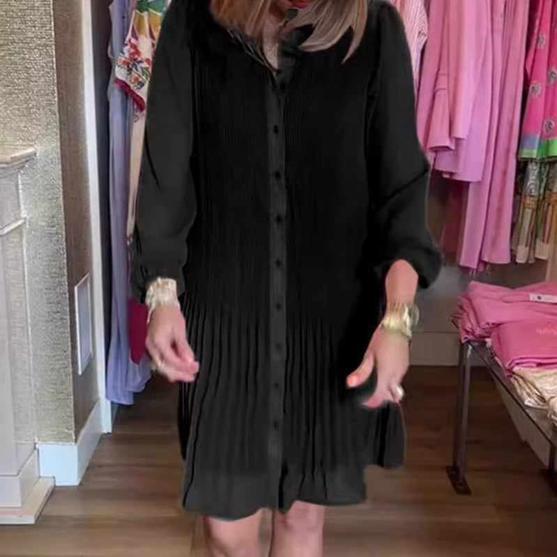 💕HOT SALE💕 Casual Button-Down Shirt Dress with Pleated Hem