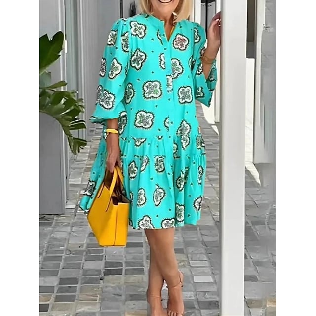【High Quality Fabric】This women's printed puff sleeve dress is made of lightweight and soft fabric, which is breathable, skin-friendly and comfortable to wear. Won't shrink or fade.