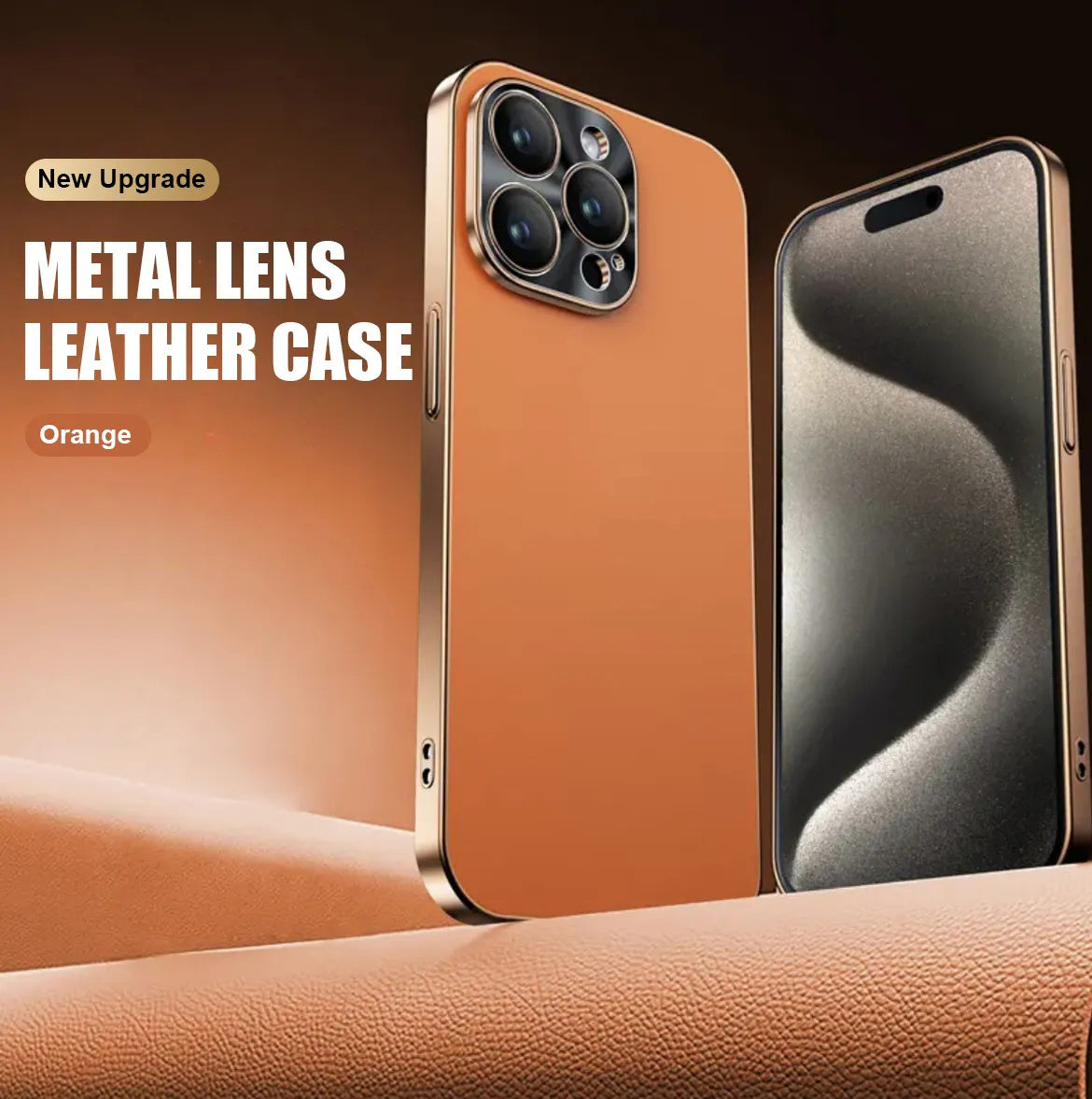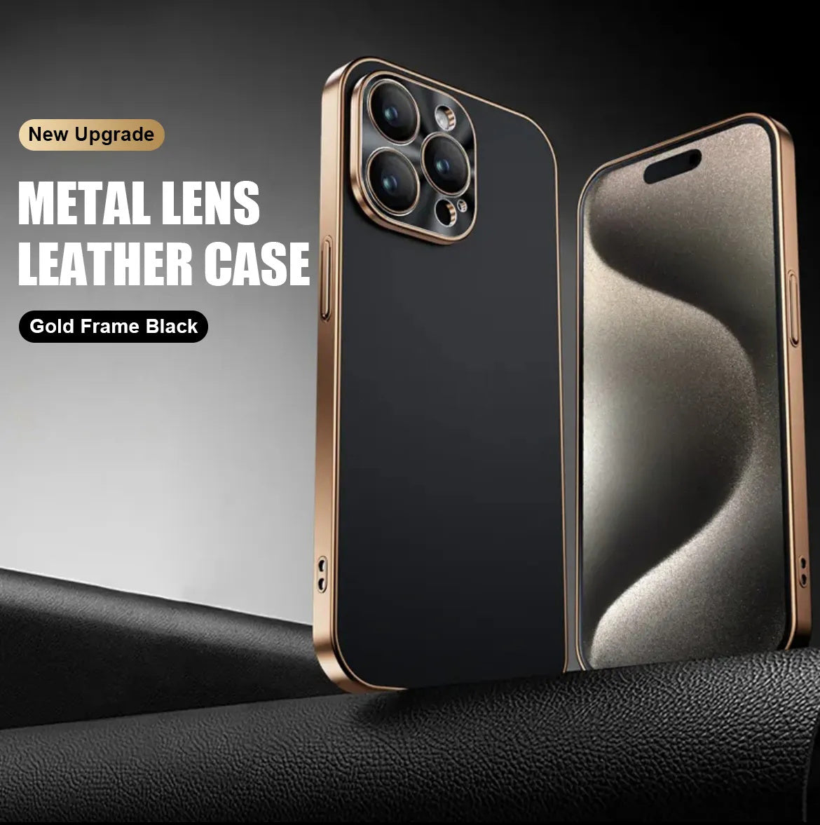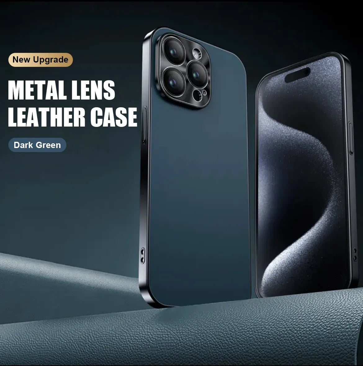 Electroplated Metal Lens Ultra-thin Leather Protect for iPhone
