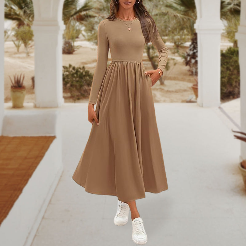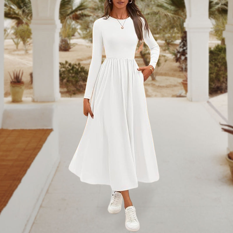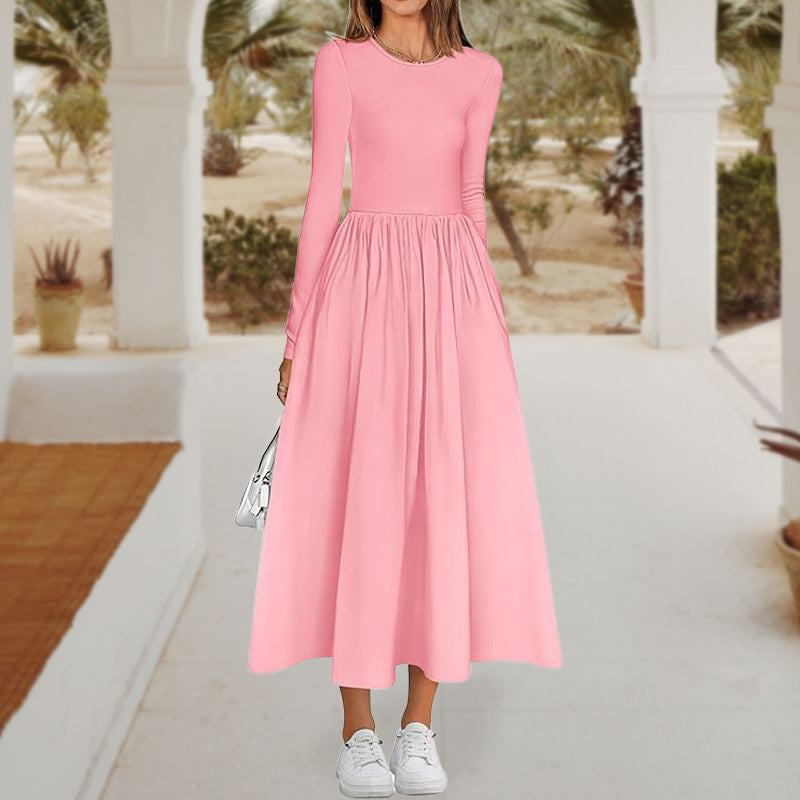 💞Elegant Solid Color Round Neck A-line Pleated Dress