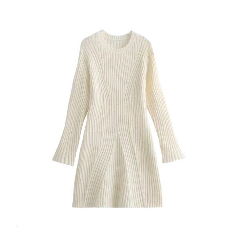 ✨New Arrival✨Solid Color Round Neck Knit Long Sleeve Mini Dress