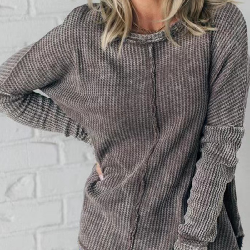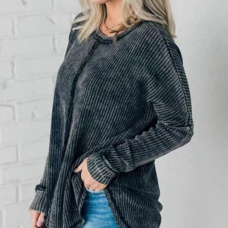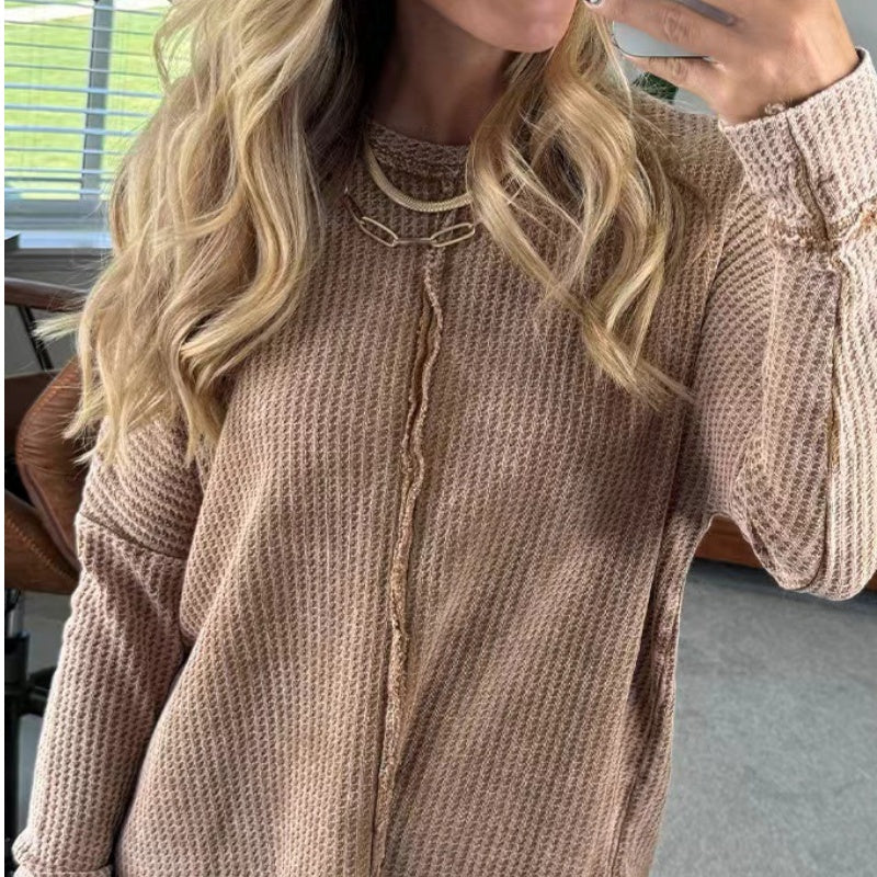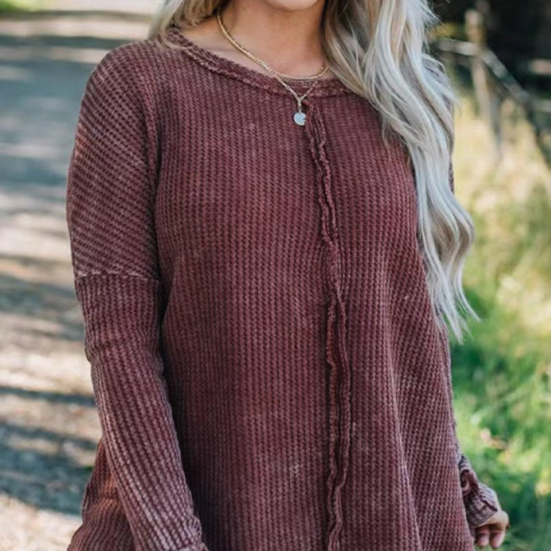 💞Women's Solid Color Long-Sleeve Waffle Knit Tops