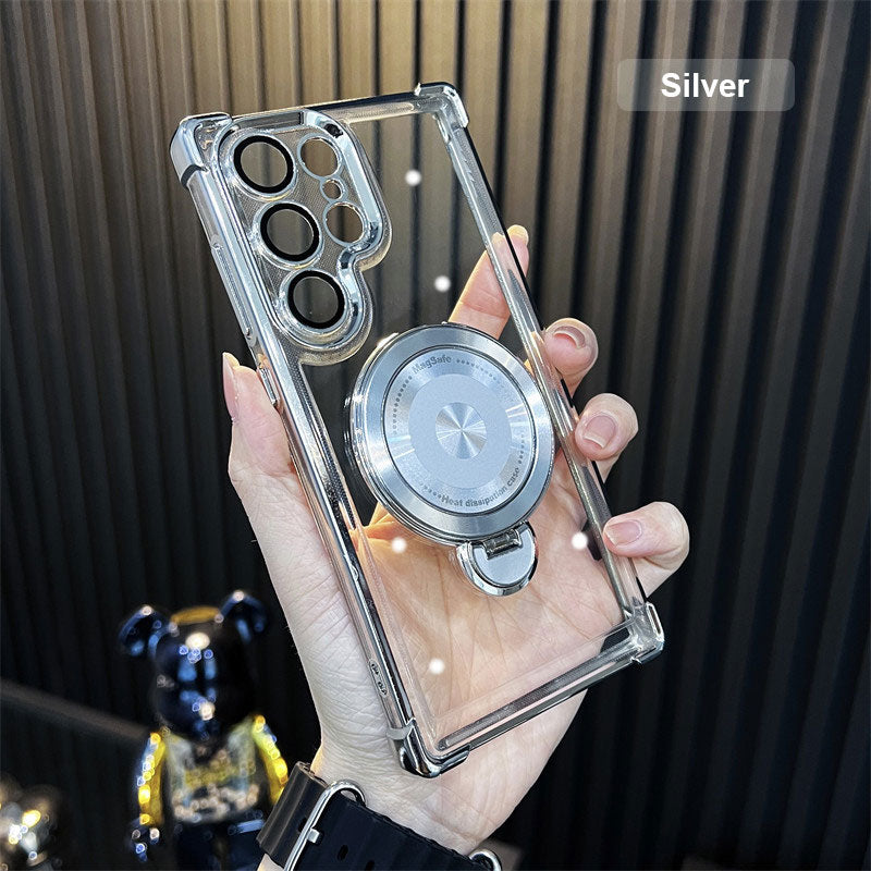 Transparent Anti-Drop Phone Case with Rotating Stand for Galaxy Series