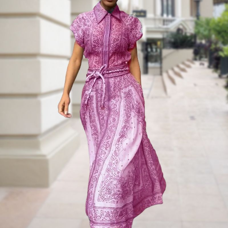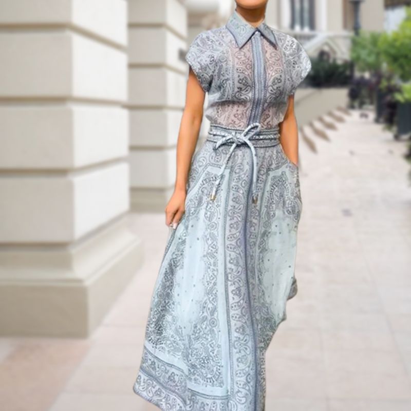 1 * Women Vintage Printed Two Piece Set- Shirt and Flowy Skirt