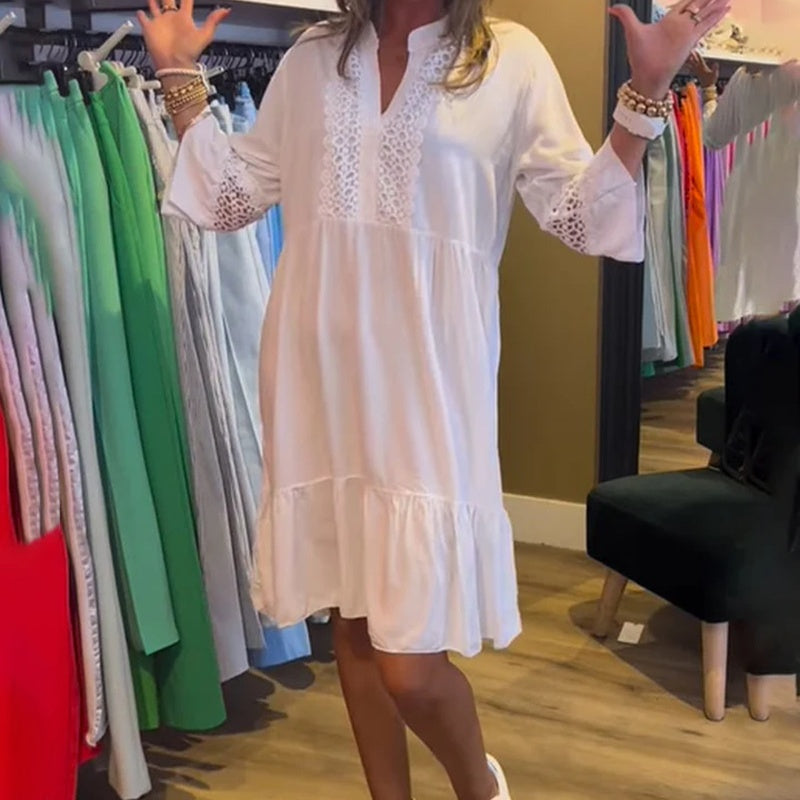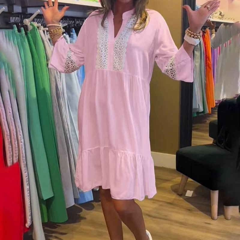 🌷Limited Time 61% OFF💞Women's Casual V-Neck Lace Long Sleeve Solid Color Dress