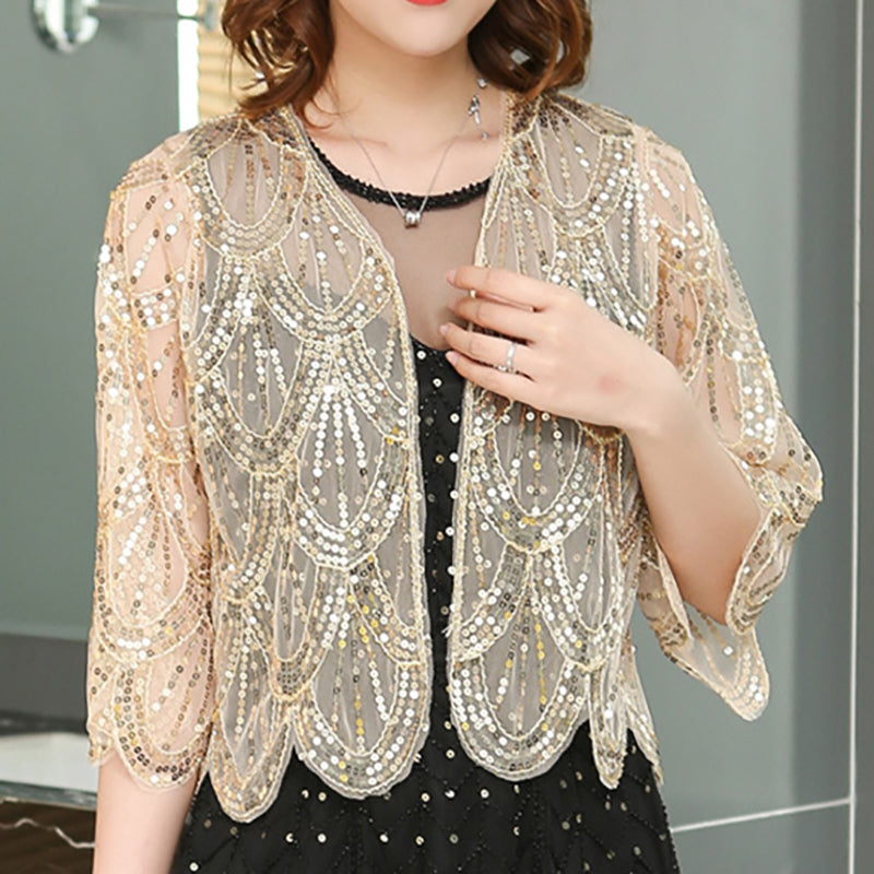 VERSATILE OCCASION WEAR: Whether it's a formal event, cocktail party, or dinner date, this sequin mesh shrug is a versatile wardrobe staple. It adds instant glamour to any ensemble and is sure to turn heads wherever you go.