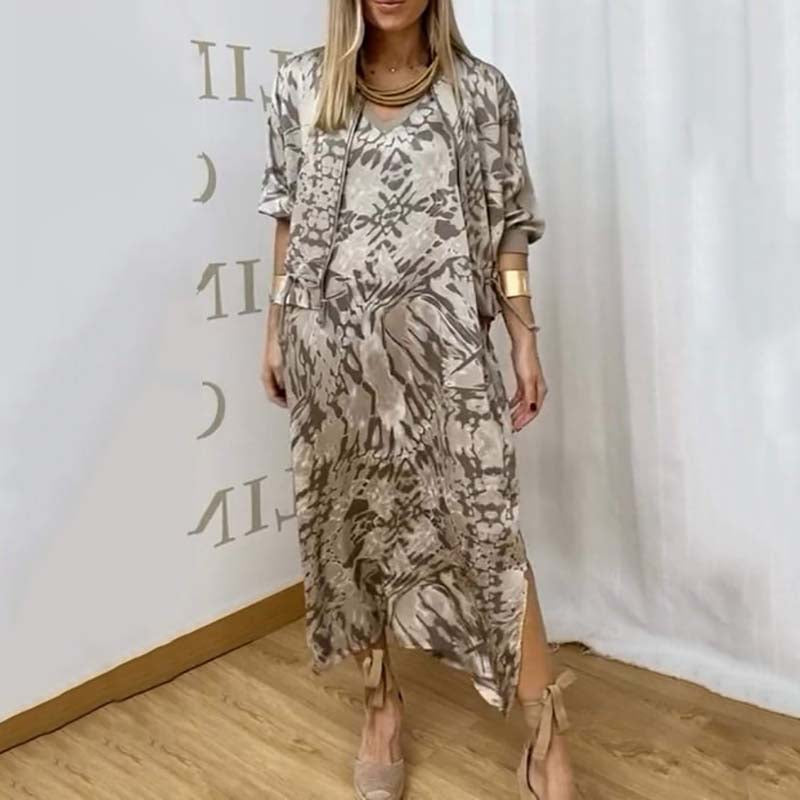 🌷Limited Time 56% OFF💞Women’s Fall Fashion Casual Printed Dress Two-Piece Set