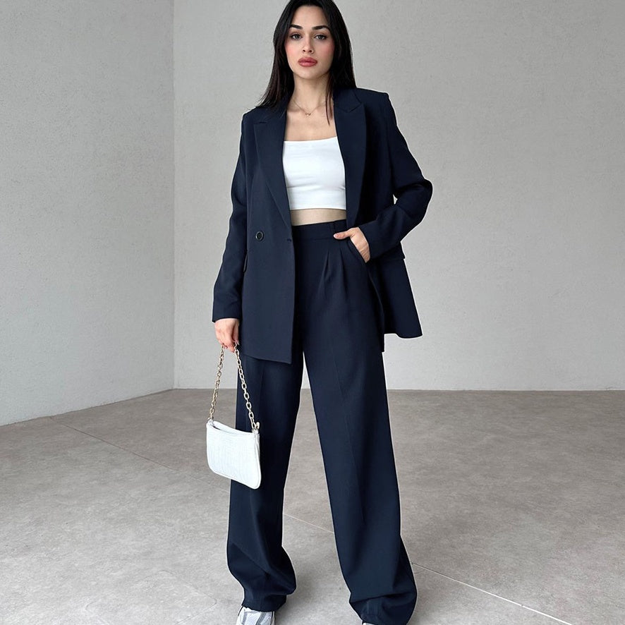 Package Include: 1* Women's Long 2-Piece Blazer Suit Set